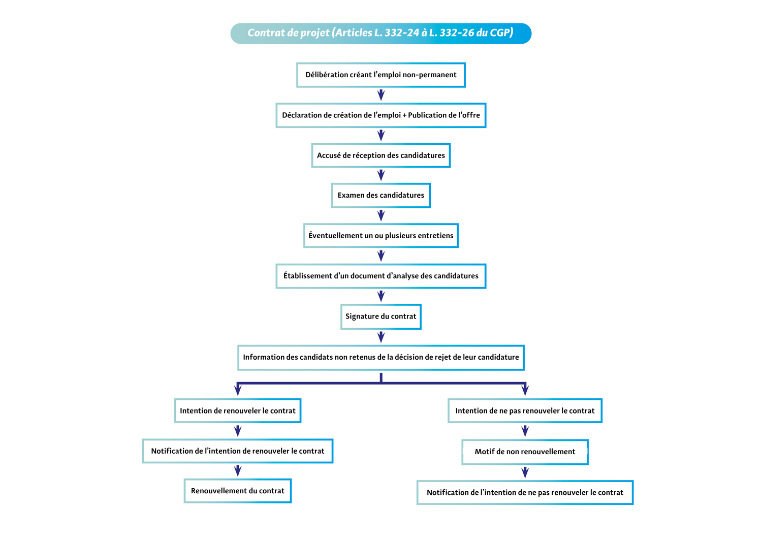 Le contrat de projet est un contrat de droit public qui permet de mener à bien un projet ou une opération identifié en recrutant un agent par un contrat à durée déterminée dont l'échéance est la réalisation du projet ou de l'opération.