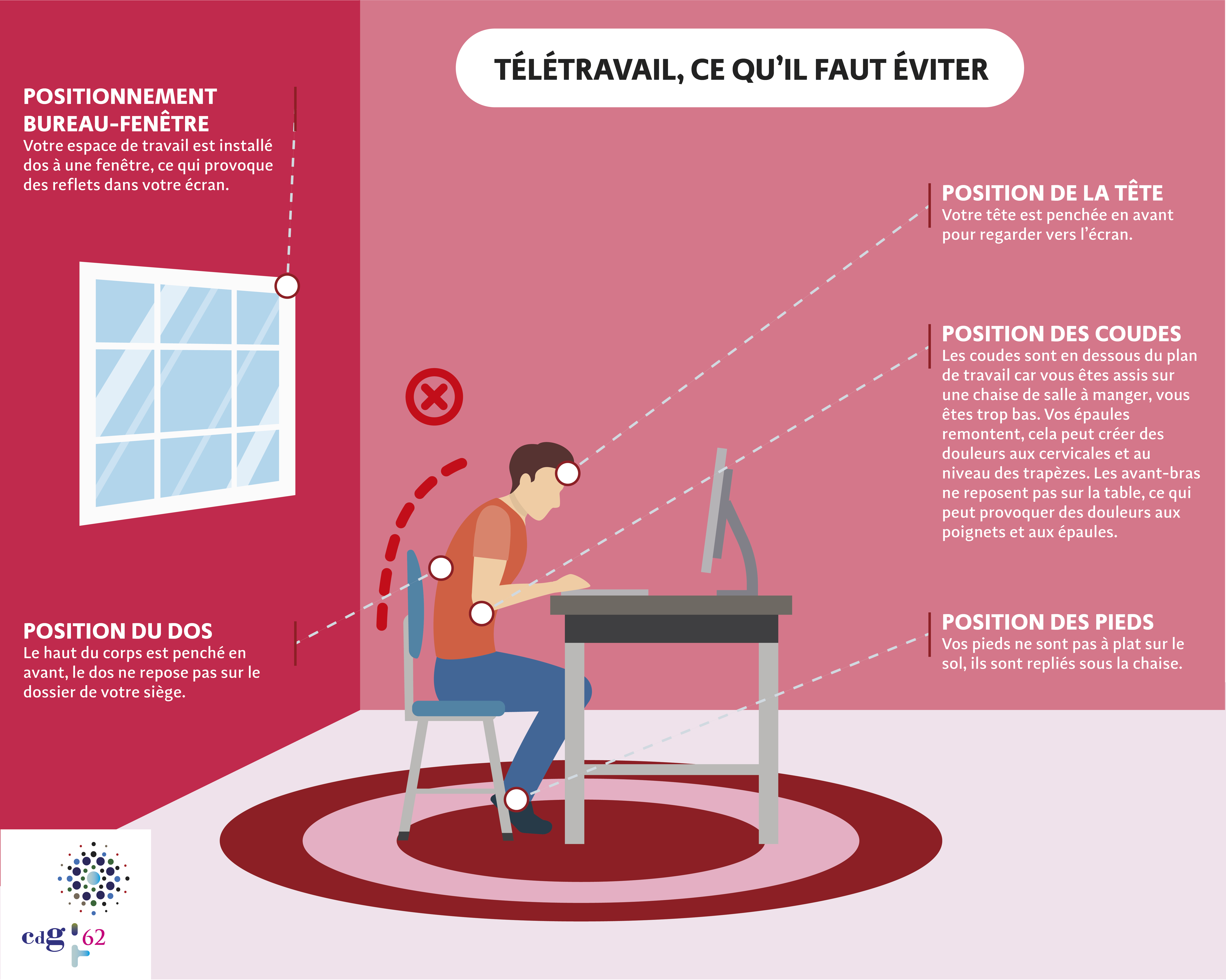 Depuis quelques jours, le télétravail est passé d’un mode de travail occasionnel à une règle de travail impérative pour beaucoup. Cependant travailler à la maison, ce n’est pas la même chose que de travailler au bureau. C’est pourquoi le CdG62 en lien avec son service de médecine préventive vous propose quelques conseils pour bien réussir votre télétravail tout en préservant votre santé.
