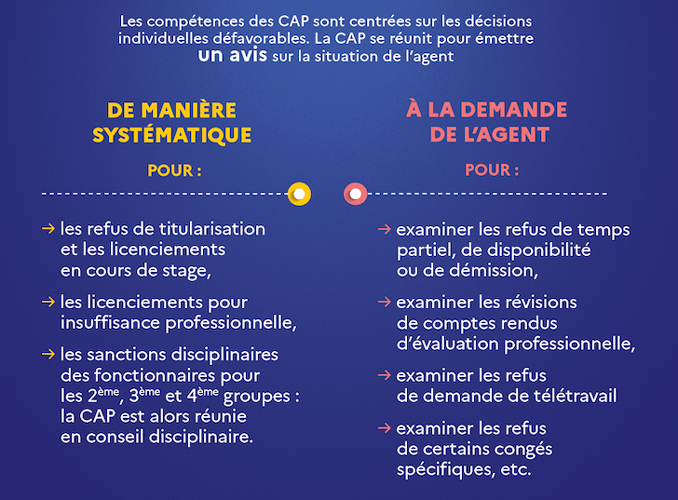 Dans la fonction publique territoriale, ces élections permettent aux agents (titulaires et contractuels) de désigner leurs représentants qui participeront à la détermination des règles individuelles et collectives qui les concernent au sein des Comités Sociaux Territoriaux, des Commissions Administratives Paritaires et des Commissions Consultatives Paritaires.