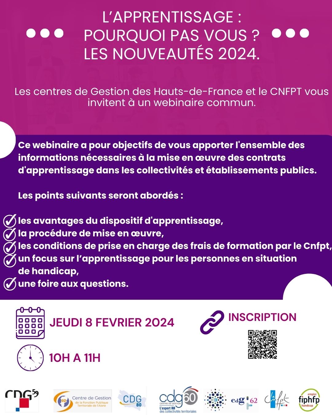 Les centres de gestion des Hauts-de-France et le CNFPT vous invitent à un webinaire commun organisé le jeudi 8 février à 10h.